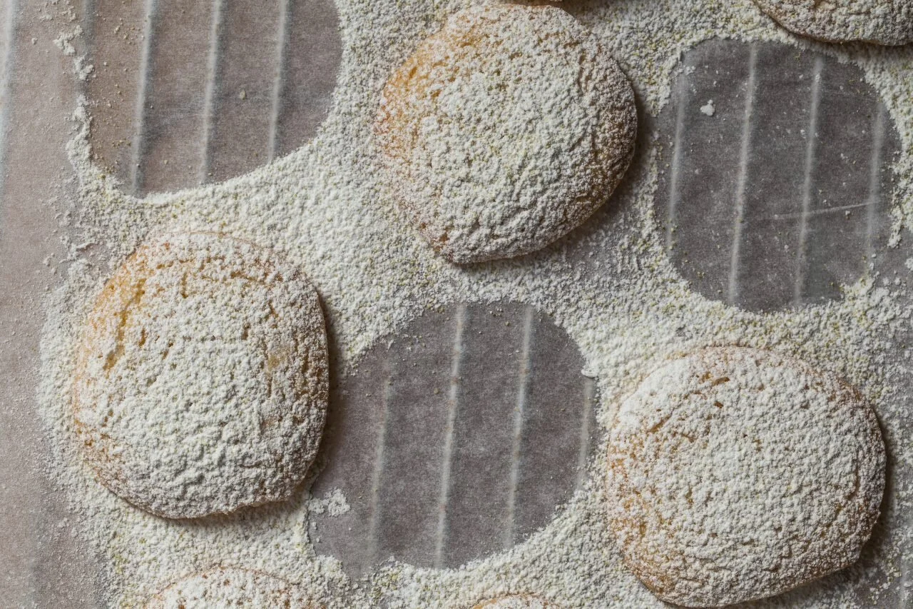 Mélanger le sucre glace avec le combava moulu et saupoudrer sur les biscuits.